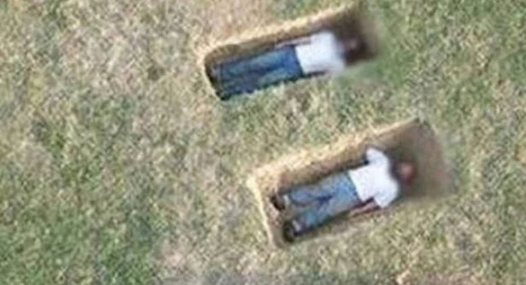 Usuarios de internet quedaron atónitos ante un descubrimiento inusual y sorprendente. A través de las imágenes de Google Maps, podría verse una imagen aterradora, dos hombres, que parecen recién enterrados en sus tumbas, una al lado de otra, propician una foto sorpréndete para los usuarios.