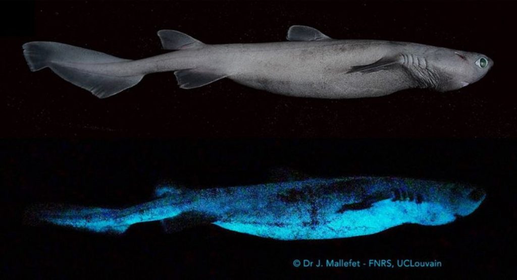 Se cree que los tiburones usan esta herramienta para camuflarse y evitar ser víctima de otros animales marinos más grandes. De estos tiburones, el más sorprendente es el carocho, que llega a medir 180 centímetros y así se convierte en el vertebrado luminoso más grande del planeta, con un peso aproximado de 30 kilos.