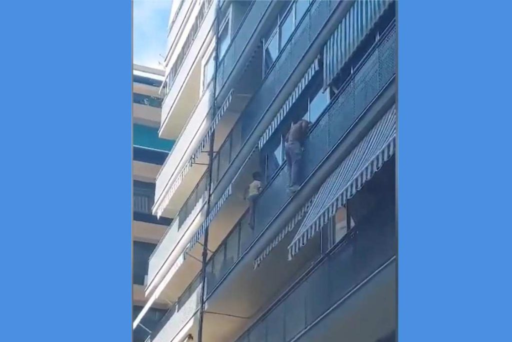 El hecho ocurrió en un barrio de la ciudad de Alicante, cuando un niño con autismo intentaba salir del balcón de su casa en un segundo piso. El niño, ya con medio cuerpo fuera, no se percataba del peligro inminente mientras los testigos en la calle le gritaban que regresara a su casa.